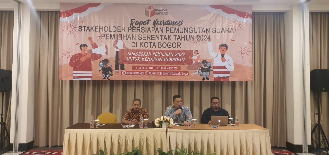Kota Bogor, Vibeindonesia.id – Badan Pengawas Pemilu (Bawaslu) Kota Bogor menggelar rapat koordinasi bersama para stakeholder untuk mempersiapkan pemungutan suara Pemilu Serentak 2024 di The Sahira Hotel, Jumat (22/11/2024).