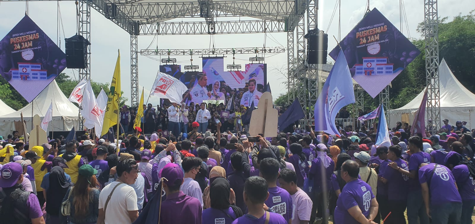 Dalam kampanye akbar ini, turut hadir para pengurus partai pengusung, seperti Partai Nasdem, Golkar, dan PSI, yang mendukung pasangan Sendi-Melli.