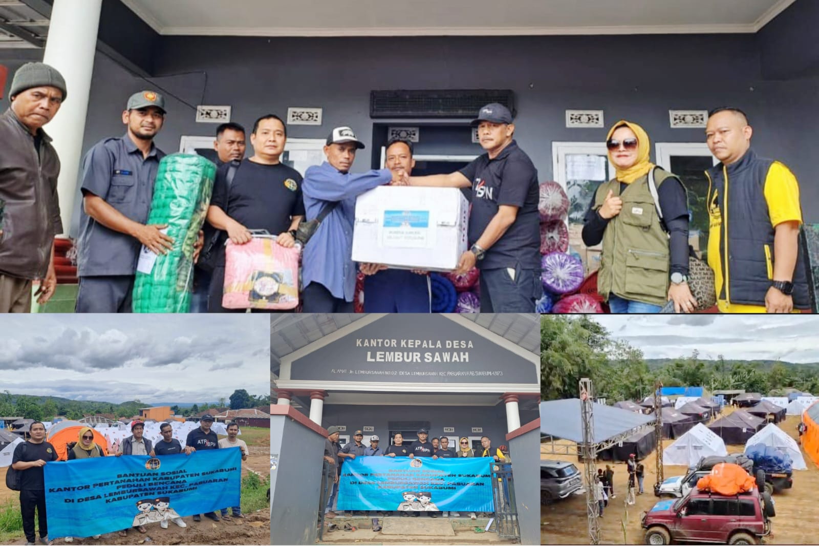 Bantuan kemanusian itu langsung diserahkan pihak BPN Kabupaten Sukabumi Peduli kepada Kades setempat di Posko tenda pengungsian, Lembur Sawah Pabuaran Sukabumi, Rabu (25/12)
