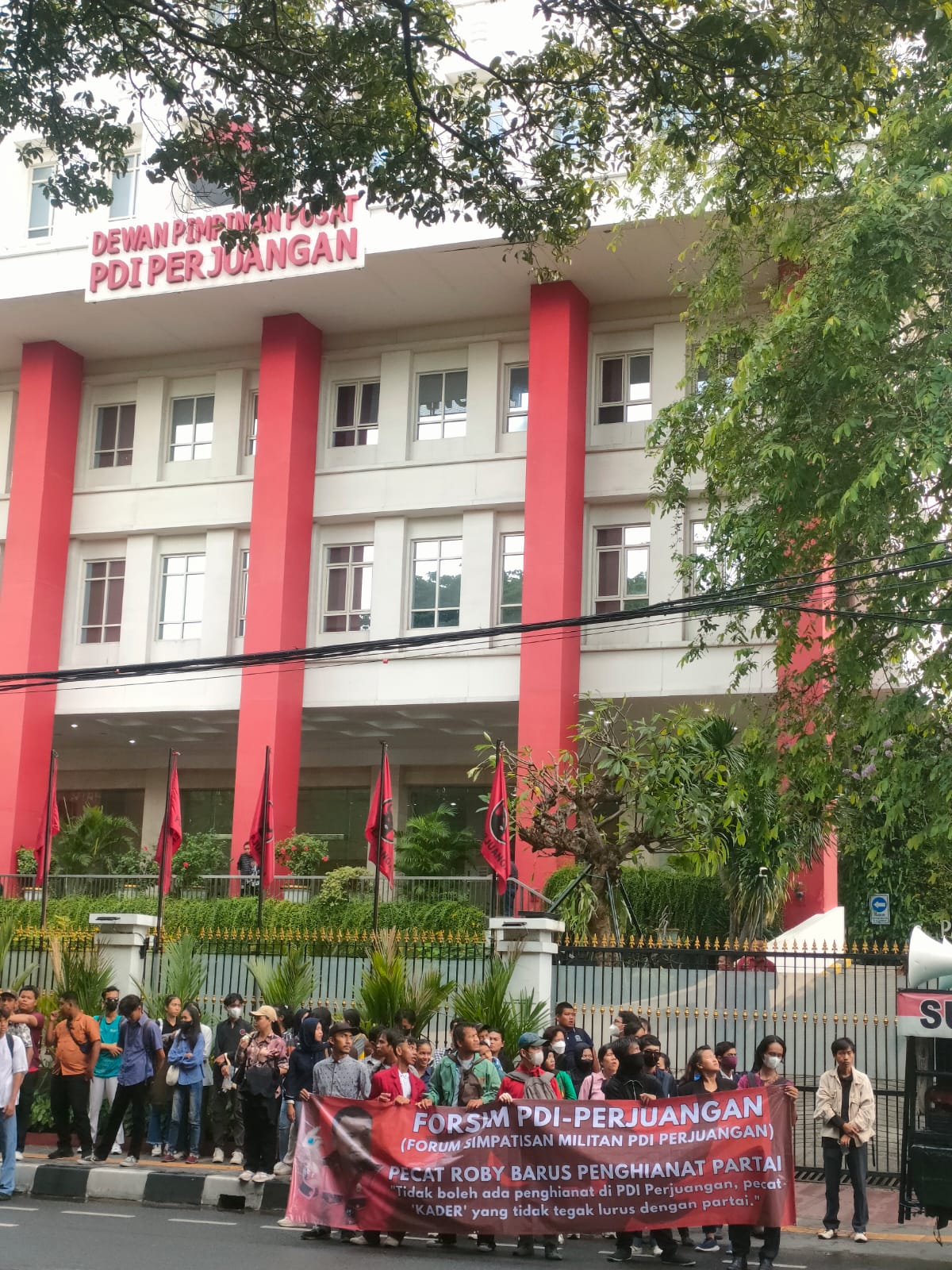 Dalam aksi tersebut, massa mengecam keras tindakan Roby Barus yang dinilai melakukan pengkhianatan terhadap partai dan tidak tegak lurus terhadap instruksi Ketua Umum PDI Perjuangan, Ibu Hj. Prof (HC) Dr. (HC) Megawati Soekarnoputri.
